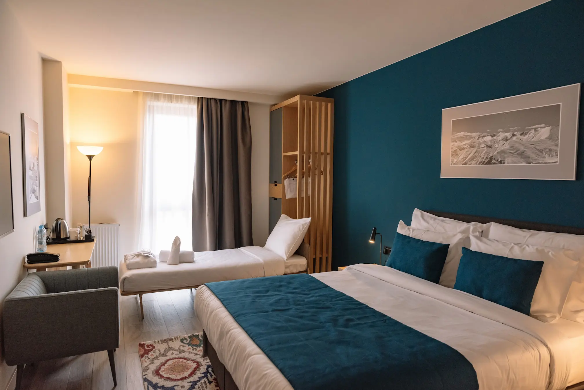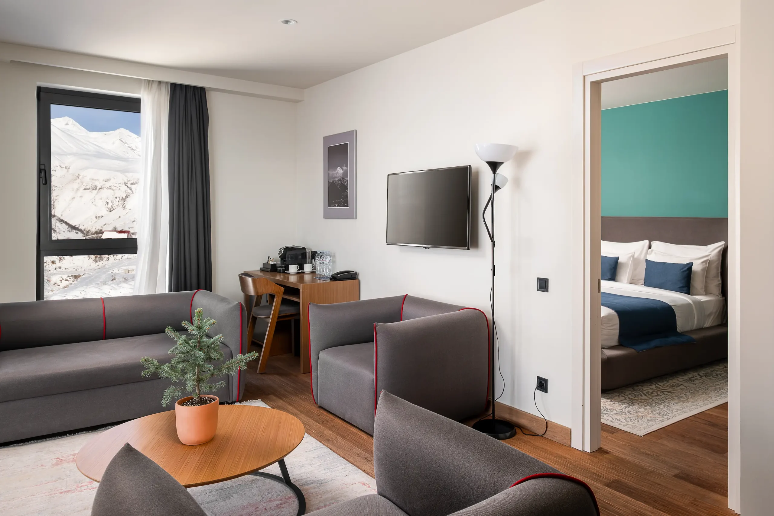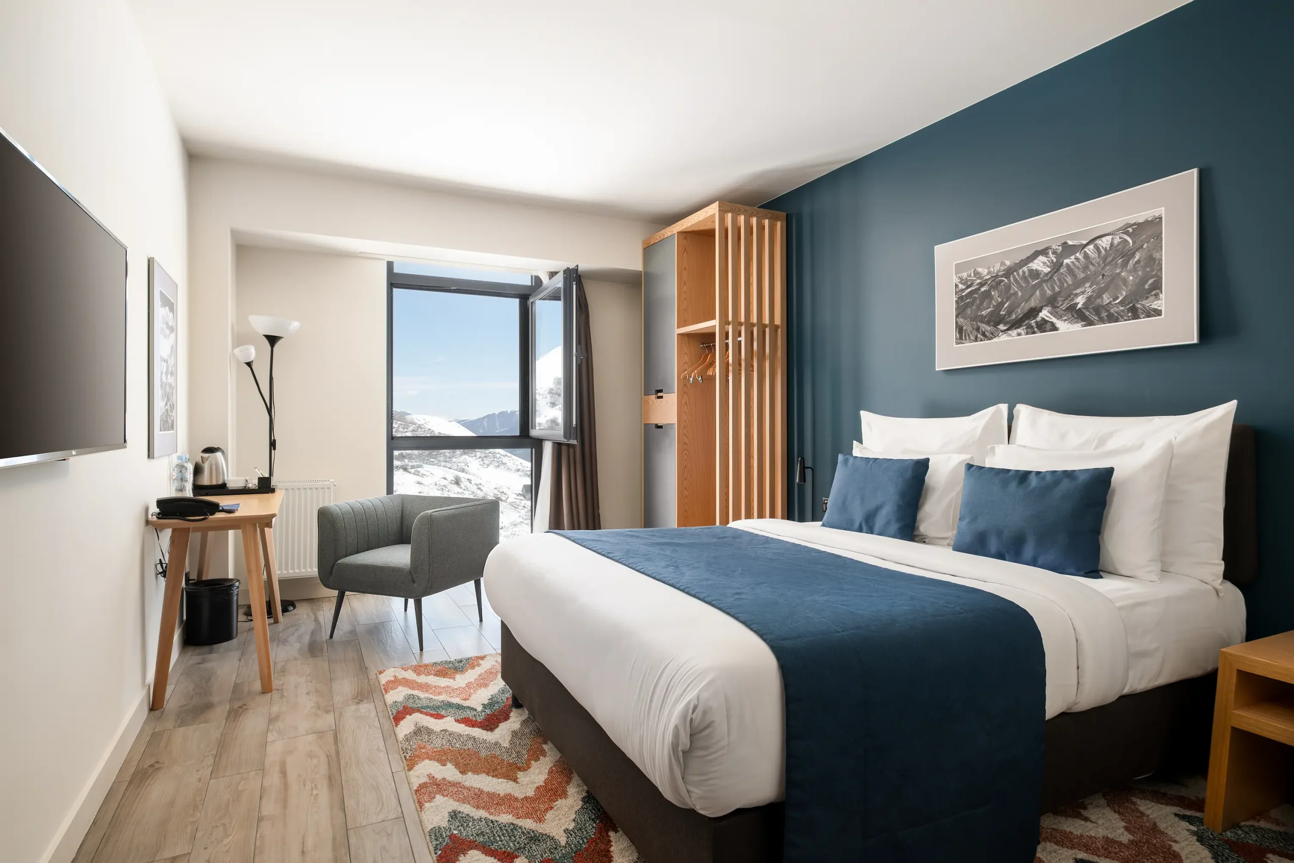 Gudauri Lodge offers 121 rooms and suites across five categories, each designed to balance comfort, style, and mountain character. From intimate doubles to spacious suites, every room combines thoughtful details with contemporary design, creating a sense of calm after a day in the outdoors.