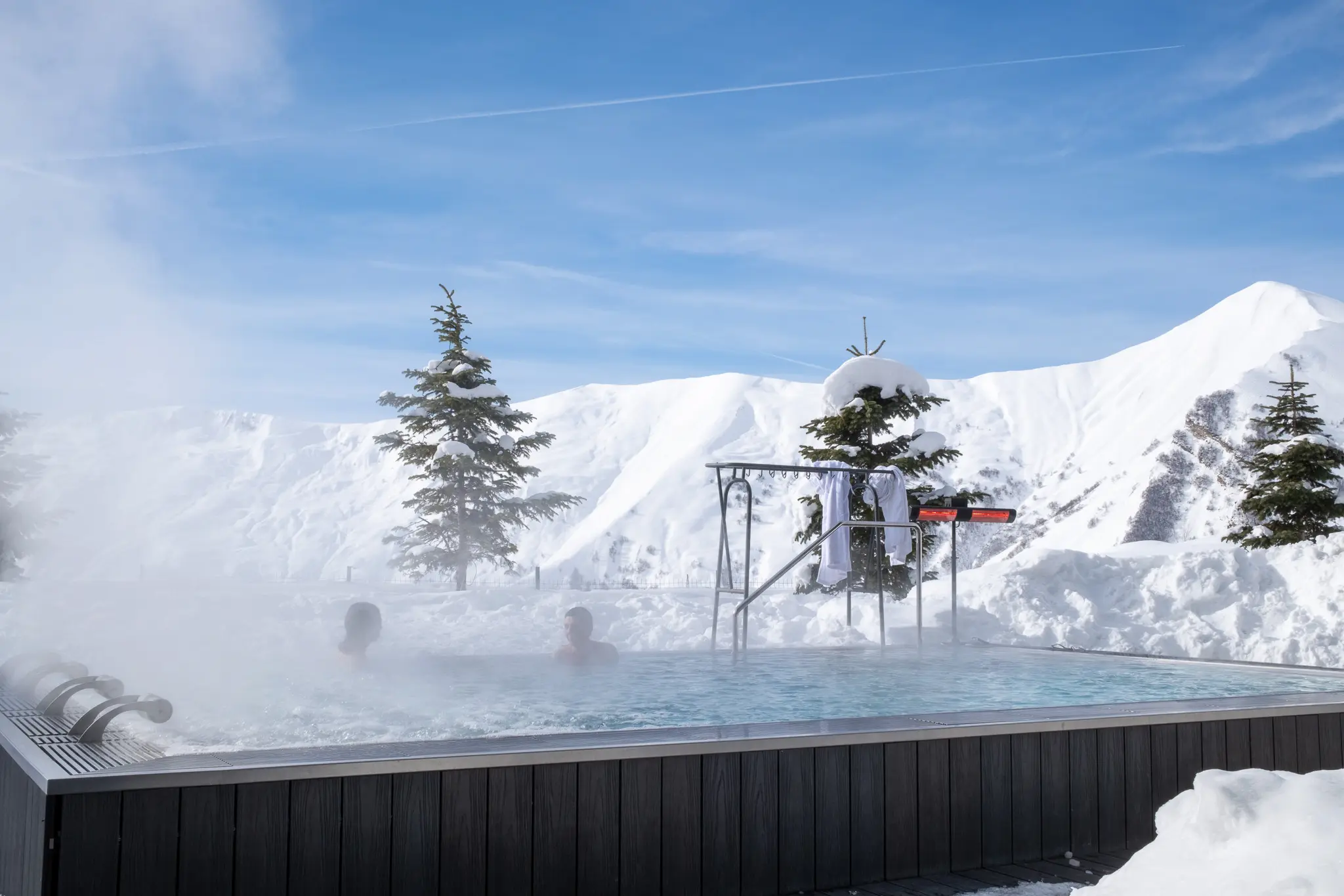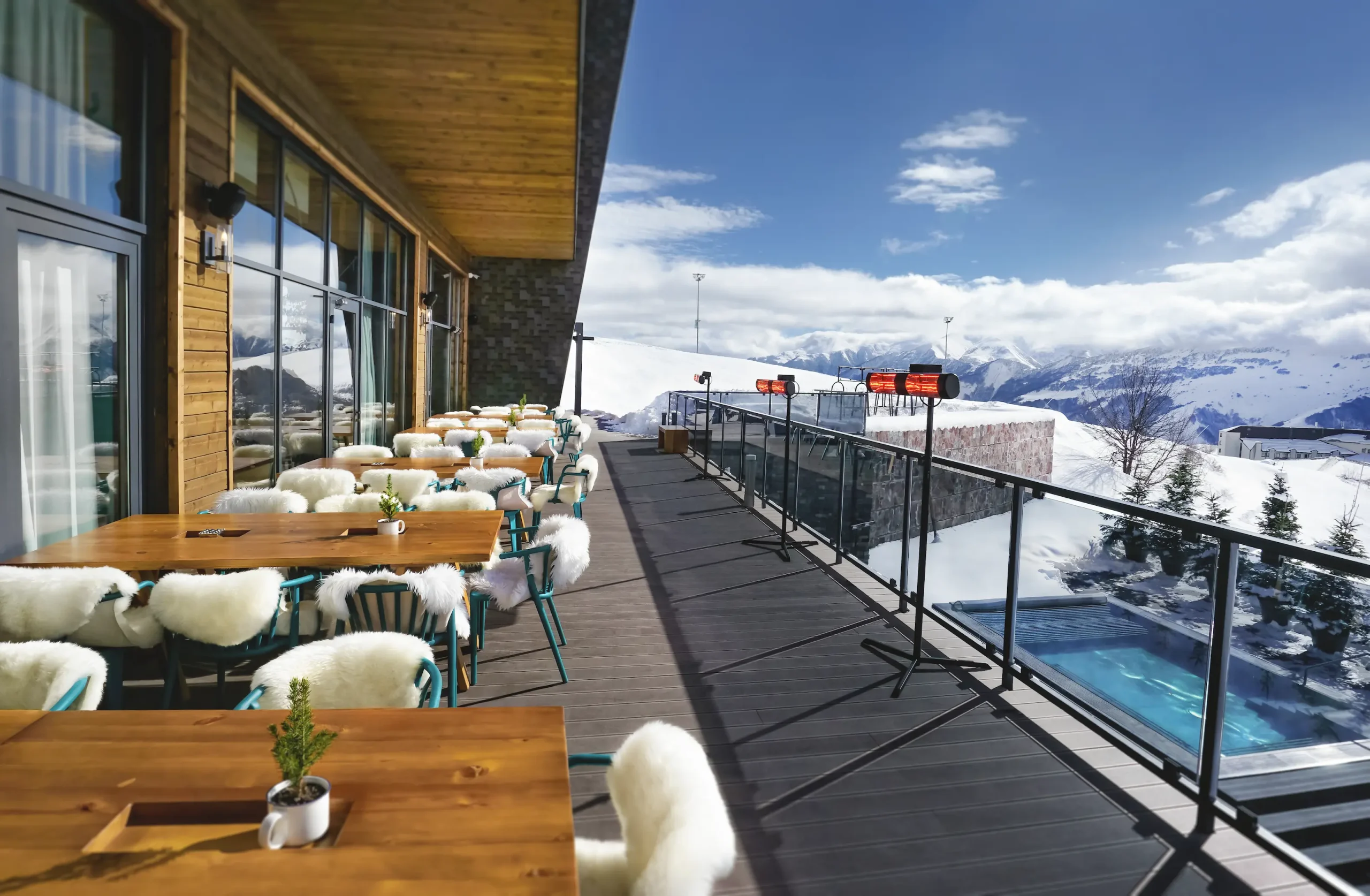 Discover MoreAt 2,000 meters, our open-air hot tub — heated to 38°C — defines the Gudauri Lodge experience. Whether you begin your morning here or unwind at day’s end, the mix of crisp alpine air, warm water, and panoramic mountain views creates a quiet sense of balance in the heart of the Caucasus.