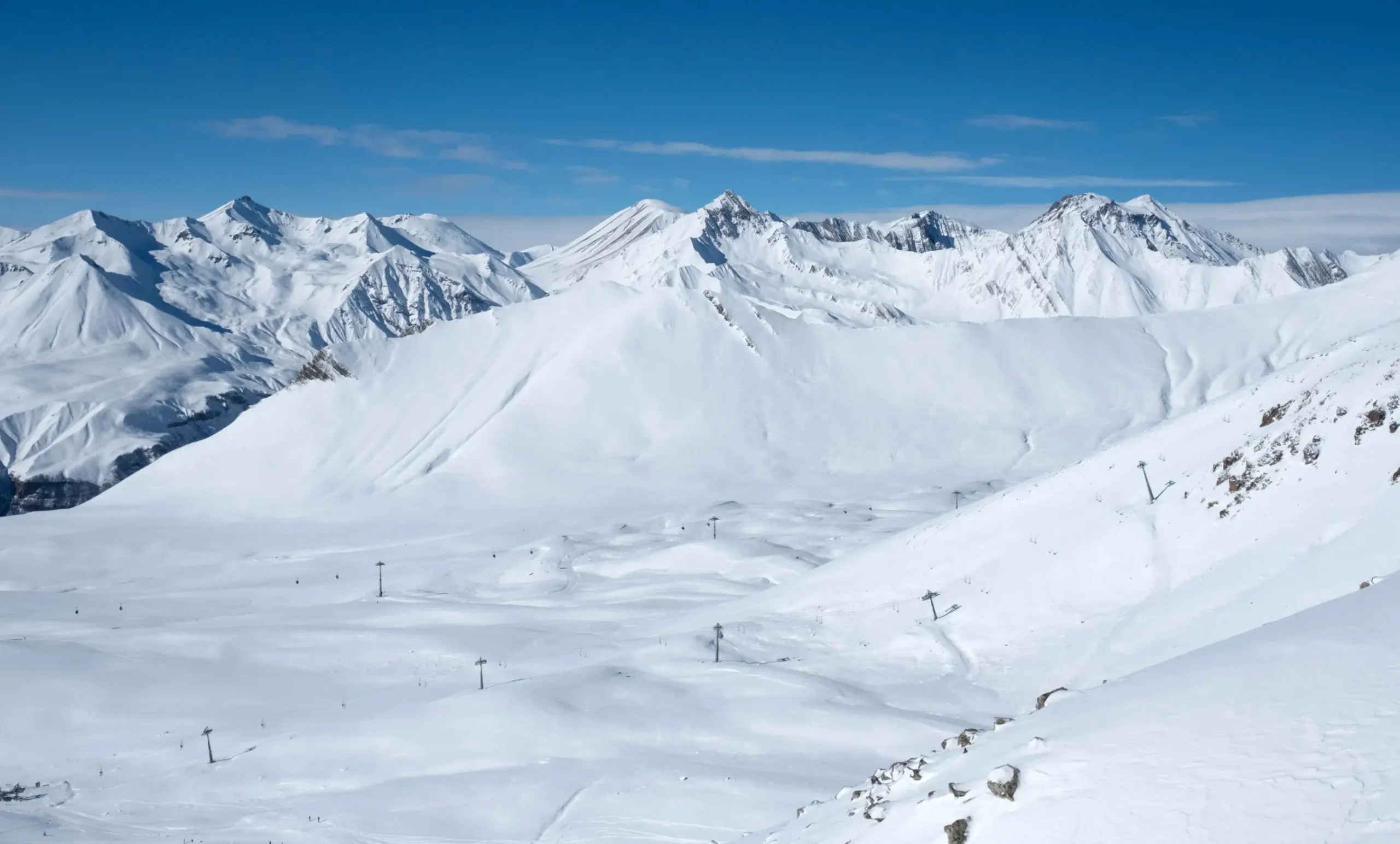 Only 120 kilometers from Tbilisi, Gudauri, set on a sunlit plateau of the Caucasus, has grown since the late 1980s from a small mountain base into Georgia’s premier alpine destination. With over 80 kilometers of FIS-certified runs and 14 modern lifts, it offers exceptional skiing, deep powder, and year-round mountain adventure.